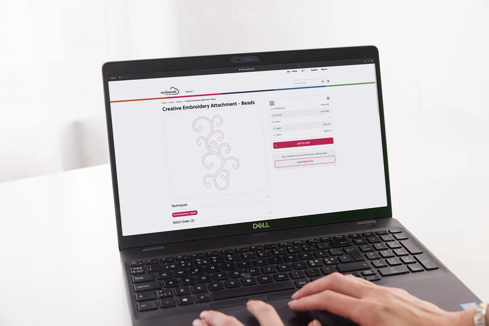 Access to a full, continuously growing library of high-quality embroidery designs directly on-screen.