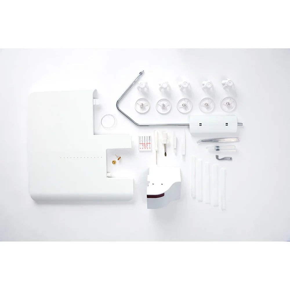 Serging up your style. Experience one touch air-threading with the simple push of a button. The 5/4/3/2 thread stitch capability provides 23 different stitch options for a wide range of stitch techniques.