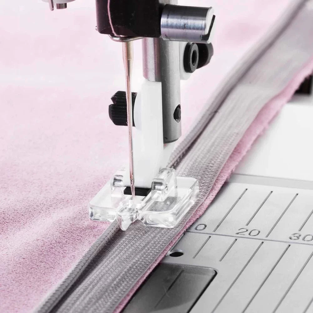 The Husqvarna Viking Clear Invisible Zipper Foot (413286545) is designed to sew invisible (concealed) zippers neatly into seams so the zipper disappears from view. The foot’s underside has dual grooves that guide the zipper coil while you stitch close to it — ideal for dresses, skirts, pants, cushions, and décor projects where a concealed zipper gives a polished, professional finish