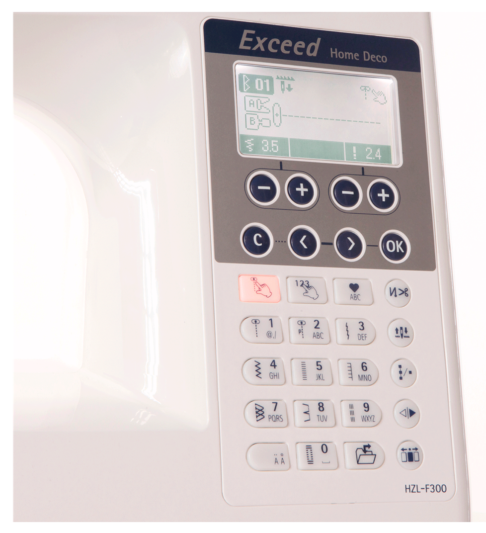 Need to adjust the stitch length or width? Just turn the dial and the new settings display on the screen. - Electronic Buttonholes: The Juki Exceed series bring industrial style, perfectly balanced sensor buttonholes to home sewing.