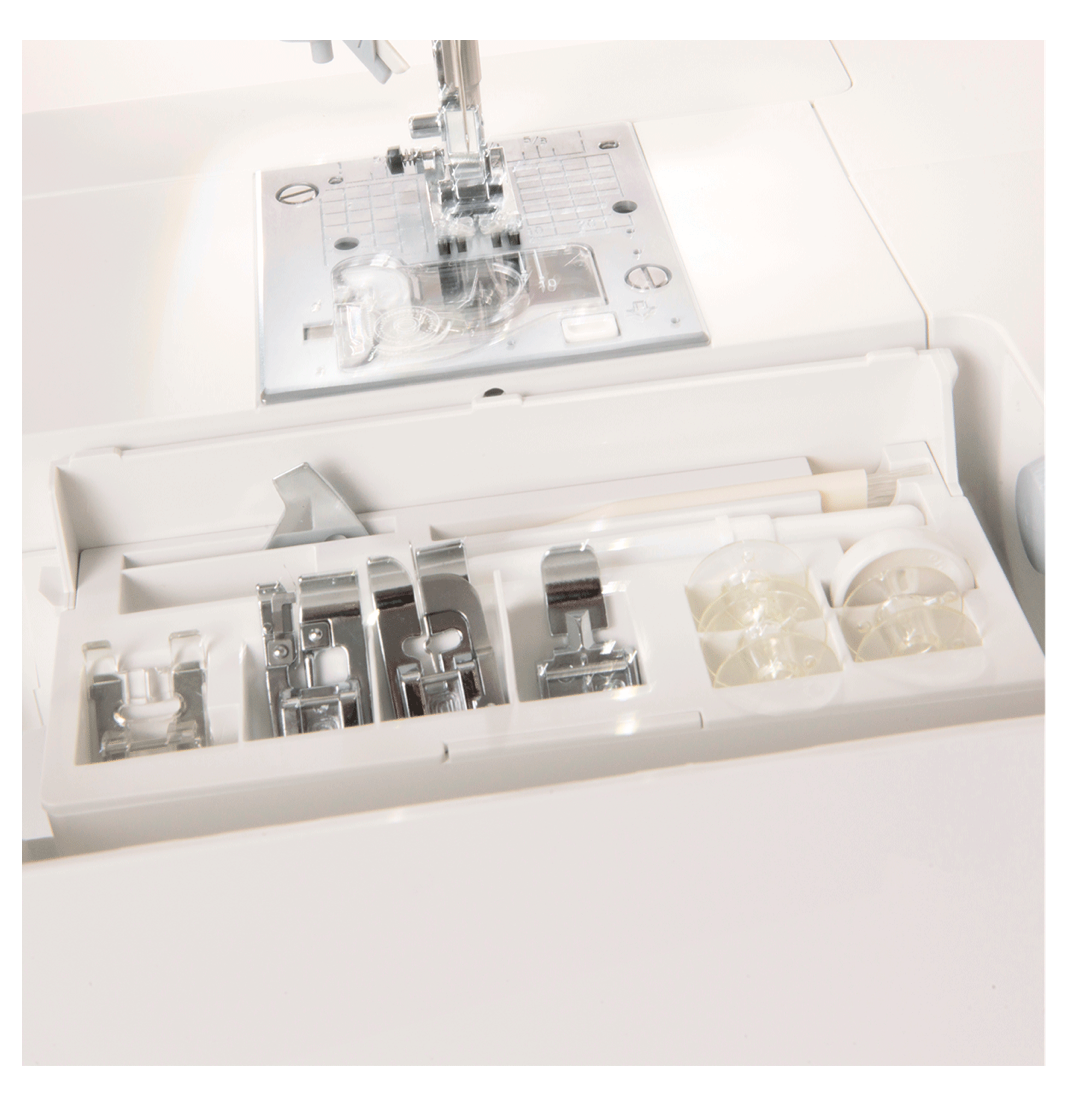 - Independent Bobbin Winder: Allows you to sew and wind bobbins at the same time.