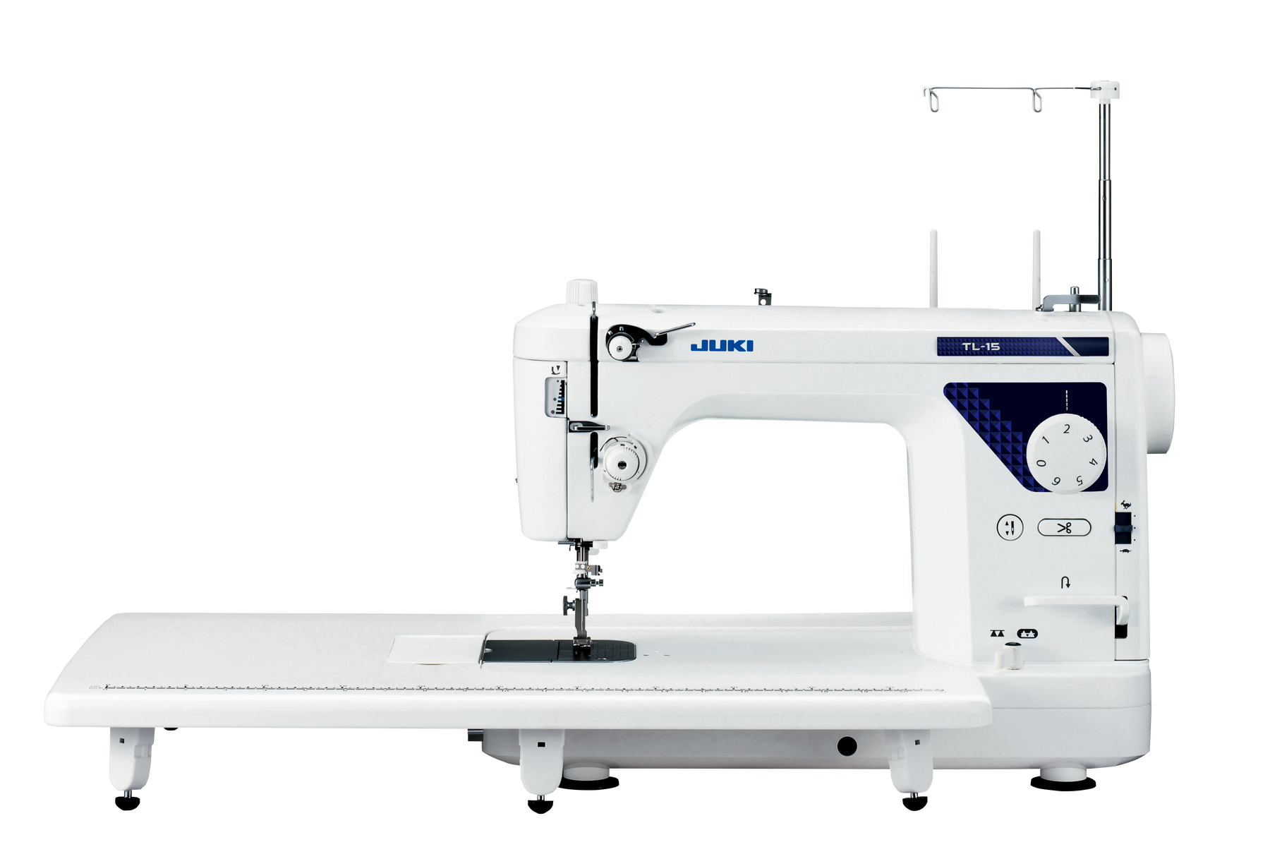 The JUKI TL-15 is a high-performance sewing and quilting machine. Continuing the TL straight-stitch sewing machine legacy, the TL-15 is packed with features to ensure industrial-quality sewing. These features include a drop feed for free motion sewing, an industrial subtension system for perfectly straight stitches, a variable speed control slider, a large work area, and six presser feet.
