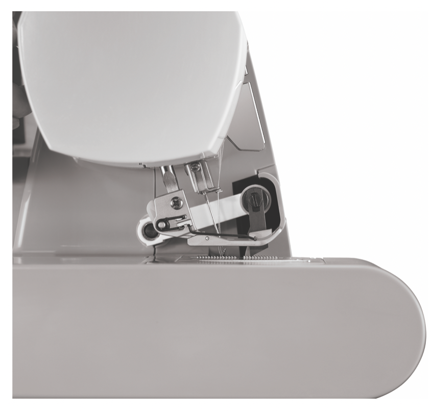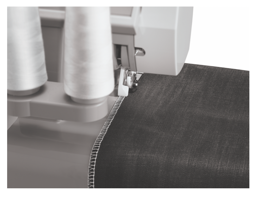 Upper knife can be engaged to trim excess seam allowance as you sew, or it can be rolled out of the way for special techniques like flatlocking or anytime when you don't want the machine to trim