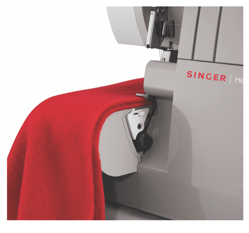 This Singer 14HD854 Heavy Duty Serger packs a punch. It is designed with a 60% larger cutting knife than other Singer sergers so it cuts through thicker fabrics with ease. The upper knife can also be moved to prevent trimming of fabric while sewing. Its heavy duty metal frame not only makes it more durable but it also keeps the machine steady for skip-free sewing.