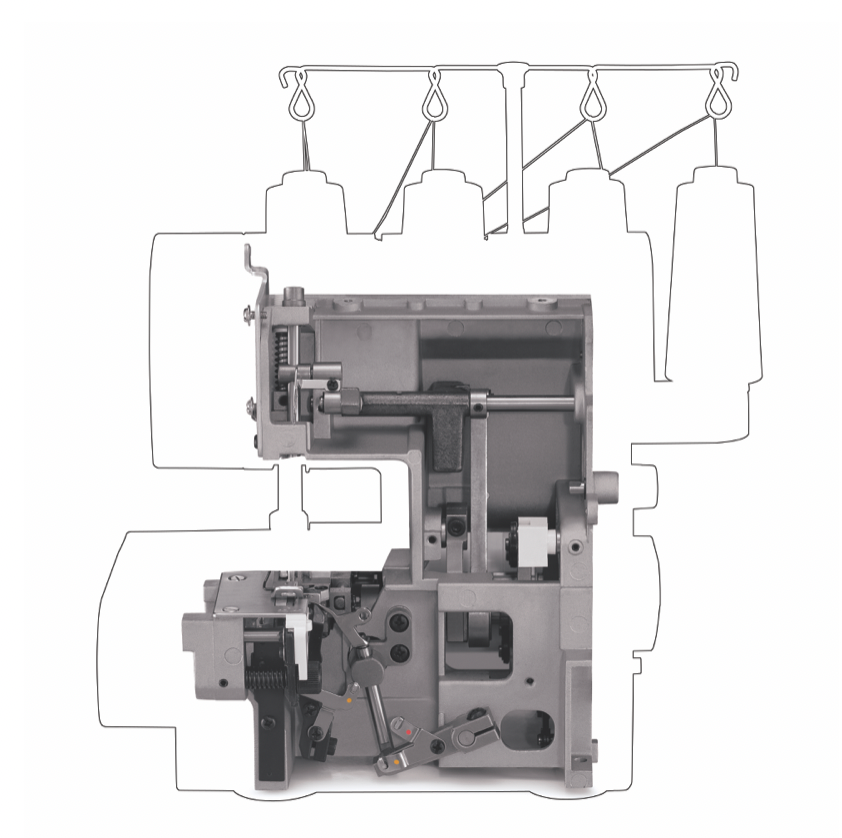 Threading path for each thread is indicated with a specific color to simplify the threading process. Handy reference diagrams are also included right on the machine.
