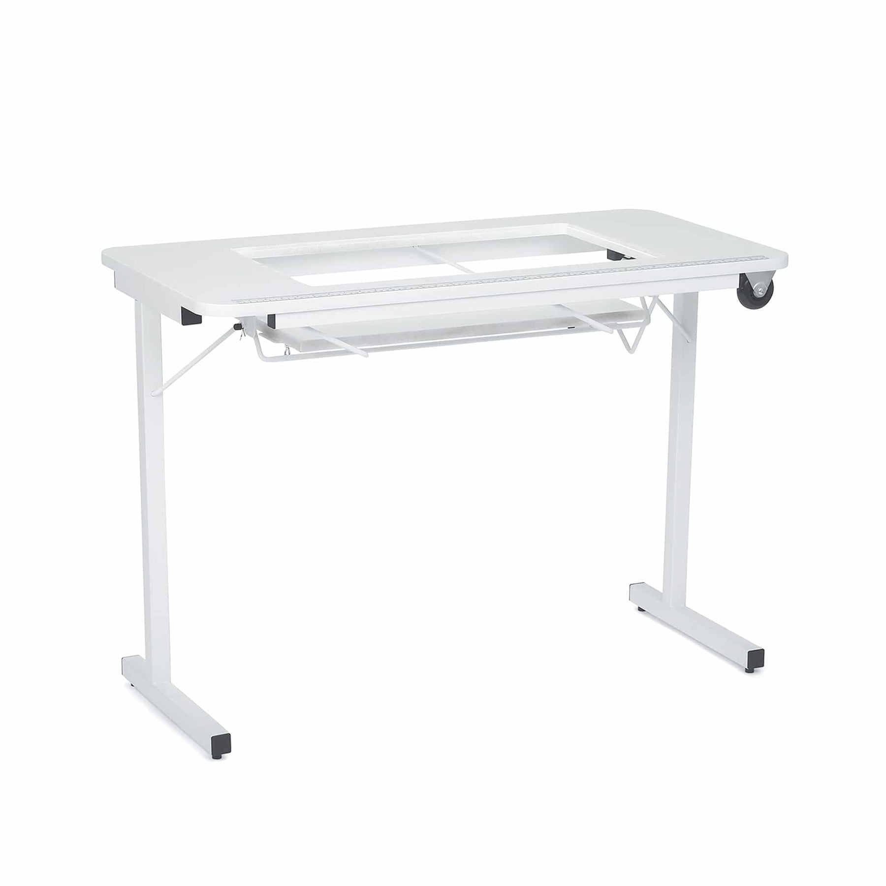 The gold standard of sewing tables! Our best-selling Gidget II Sewing Table is a reliable, heavy-duty sewing table designed for quick set-up and easy storage! Gidget II features a 2-position manual sewing lift, steel locking legs, a built-in measuring decal and 2 durable wheels for easy transportation! Perfect for community sewing guilds, RVs or a 2nd sewing station!