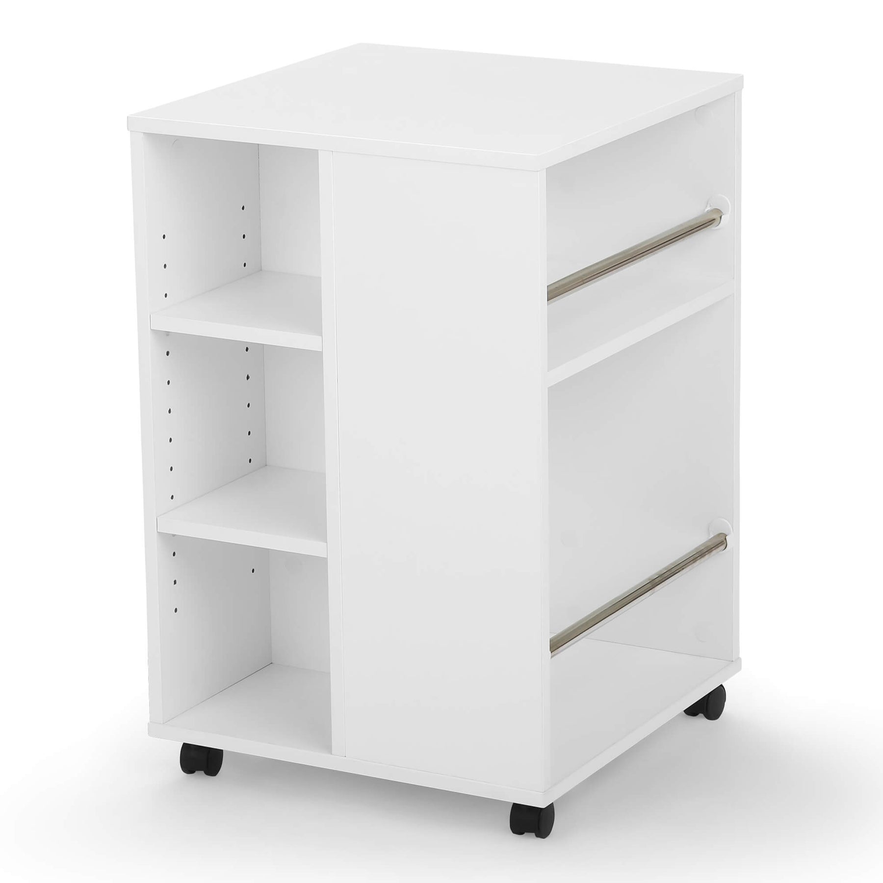 Arrow Sewing Furniture’s Storage Cube craft organizer is a versatile, 4-sided storage cabinet, designed to keep your sewing and crafting space clean and tidy! Features includes 18 thread spindles, 42 removable thread and bobbin holders, rods to hang ribbon, heavy-duty casters for easy mobility, and adjustable shelves to store fabric, books and other sewing notions. The perfect craft organizer to complement to your sewing cabinet or quilting studio! Use Storage Cube as the perfect wrapping station for the Holidays!