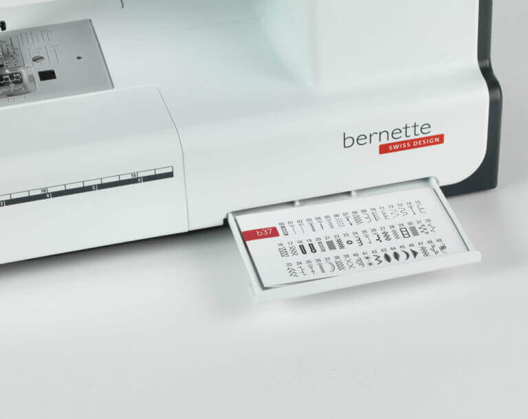 The bernette 37 is a compact computerized model with simple operation and robust construction. It has many functions, such as the practical start/stop function that allows you to sew without using the foot pedal. You can also use the needle stop up/down function to decide whether the needle should stop in the fabric or up above it. This is a particular advantage when you want to sew corners and turn the fabric around the needle. With the bernette 37 you can also adjust the sewing speed to suit your individual requirements and the type of material. The bright LED light helps ensure that your work surface is always well lit. The bernette 37 is delivered with 5 presser feet (soles).