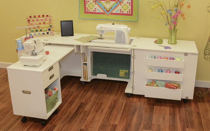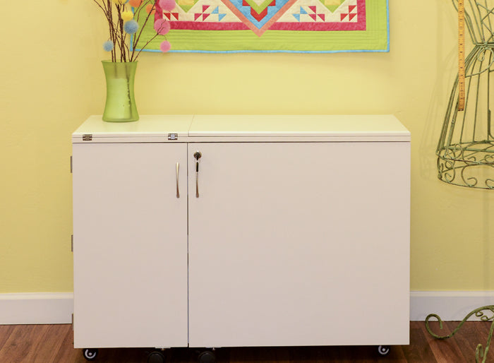 When your sewing is complete, safely conceal and secure all your sewing notions and equipment by closing both doors and turning the key to lock them shut.